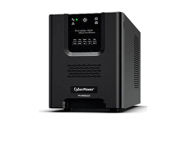Линейно-интерактивный однофазный ИБП CyberPower PR1000ELCD SMART Professional мощность 1000 ВА / 900 Вт, форм-фактор Tower, для защиты офисного оборудования: ПК, рабочих станций, сетевых и периферийных устройств. Гарантийное и сервисное обслуживание в РФ.