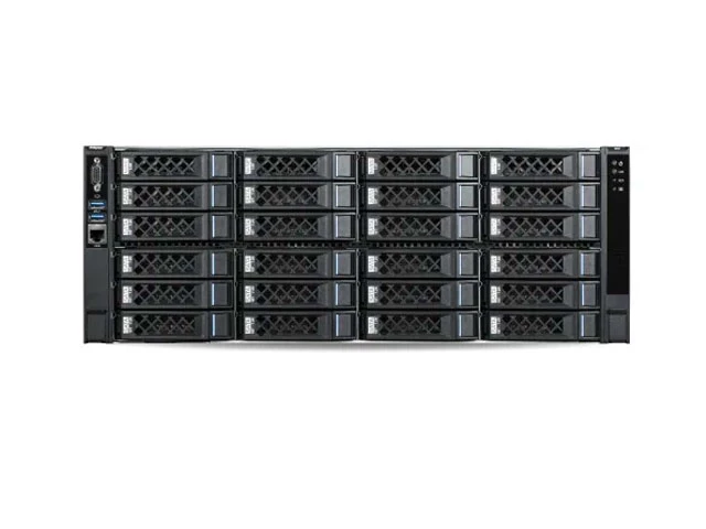 - Система поддерживает накопители малого и большого типоразмера, на 2,5 и 3,5 дюйма. Максимально можно установить 24 больших жестких дисков.