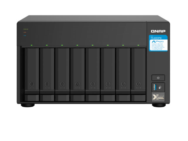 Сетевой накопитель QNAP TS-h886, 6 отсеков 3,5 / 2,5 дюйма, 2 отсека 2,5 дюйма, 2 слота M.2 NVMe, 4 порта 2,5 GbE BASE-T, настольный форм-фактор. Процессор Intel Xeon D от 4 ядер с частотой от 2,6 ГГц, оперативная память ECC DDR4 от 16 Гб с возможностью расширения до 128 Гб. Операционная система QuTS hero.