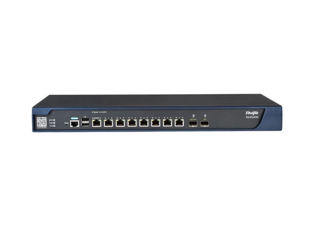 Универсальный унифицированный шлюз безопасности Ruijie RG-EG3230 имеет 8 портов GE (до 6 портов WAN), 1 SFP, 1 SFP + порты 10G, 1 ТБ жесткого диска (пожизненное бесплатное обновление подписи L7 DPI, бесплатный IPSec VPN), 1000 одновременных пользователей, максимальная пропускная способность 4 Гбит/с.