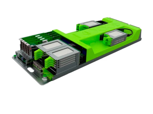 - Сами серверы представлены в виде компактных высокоплотных модулей, которые устанавливаются в шасси 2 OU. Одни шасси вмещают 2 серверных модуля.
