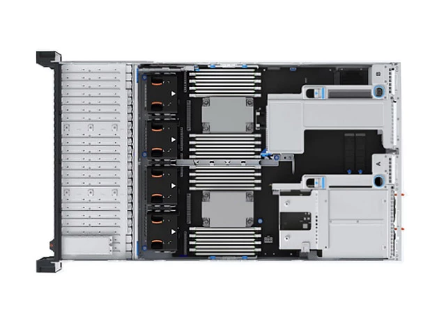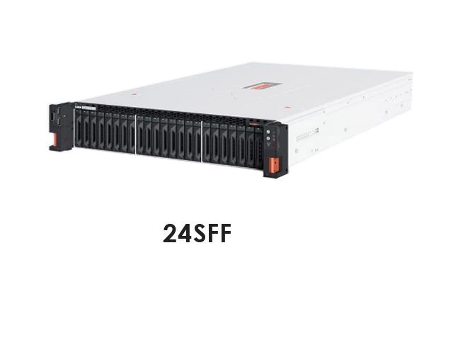 Варианты конфигурации: 12 × LFF SAS/SATA (8 × NVMe) спереди 24 × SFF SAS/SATA/(8 × NVMe) спереди Дополнительно 4 × SFF SAS/SATA/NVMe сзади |